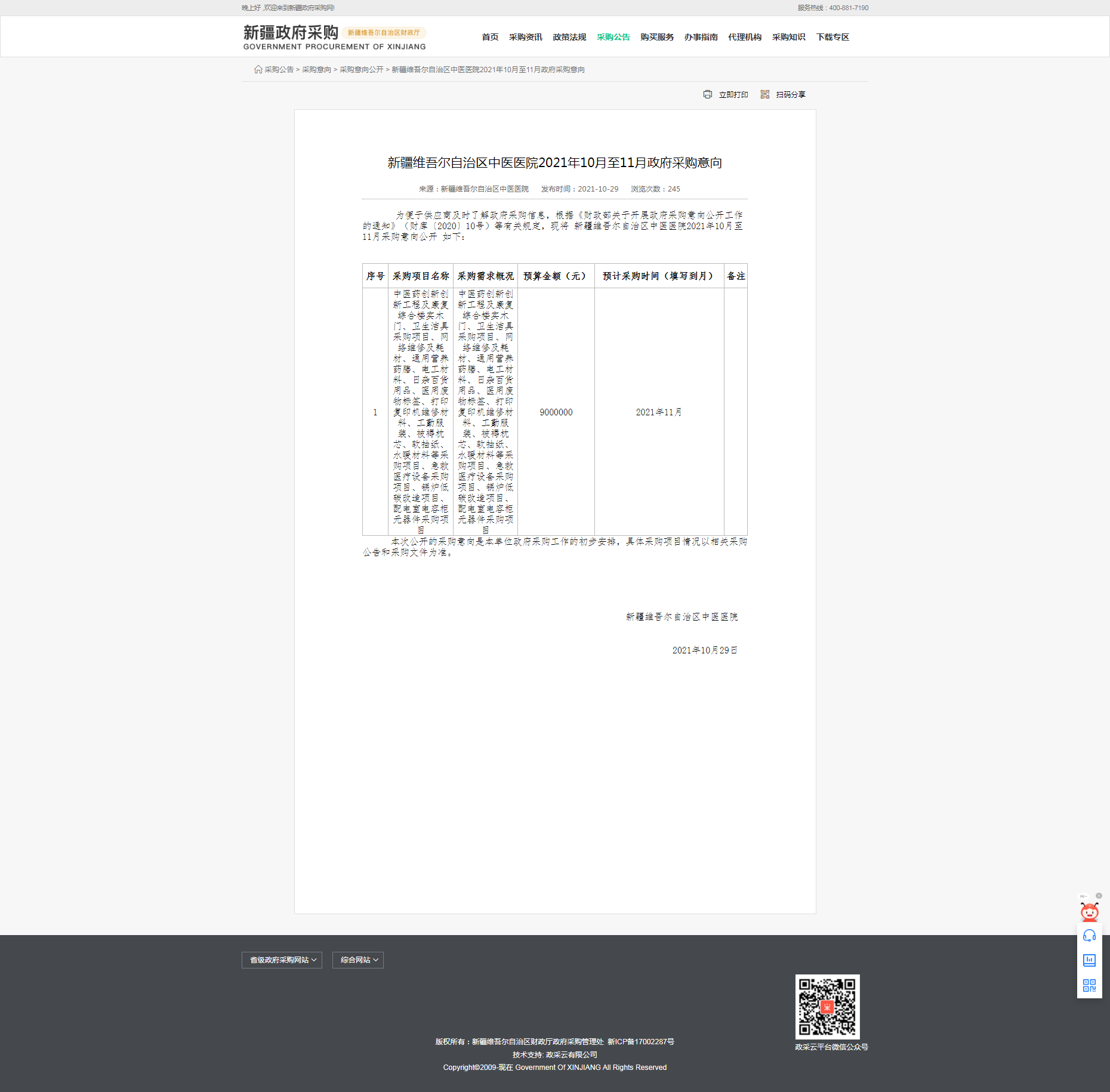 新疆维吾尔自治区中医医院2021年10月至11月政府采购意向.png