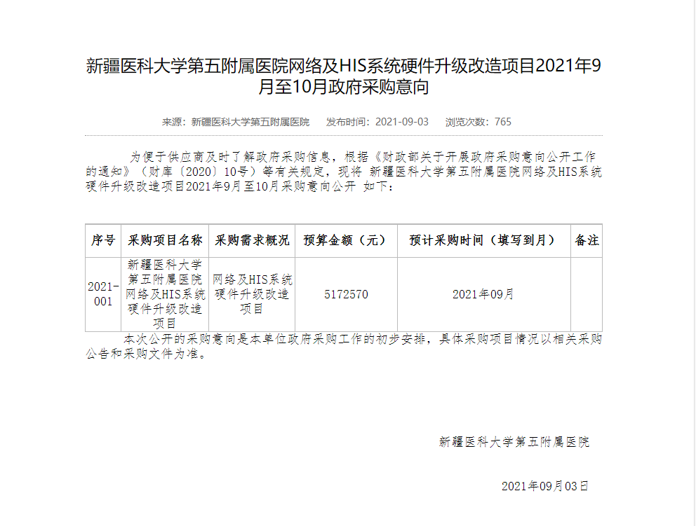 [政采云]中科高盛咨询集团有限公司关于新疆医科大学第五附属医院网络及HIS系统硬件升级改造项目的公开招标公告