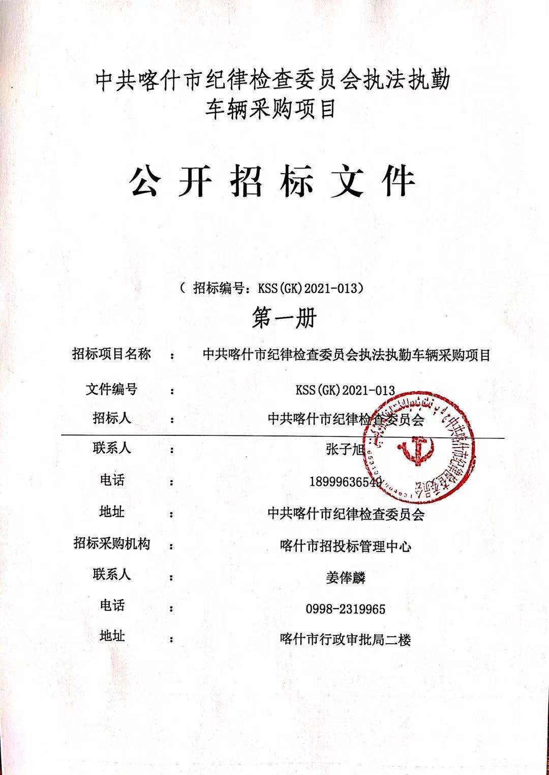 [政采云]喀什市招投标管理中心关于中共喀什市纪律检查委员会执法执勤车辆采购项目的公开招标公告