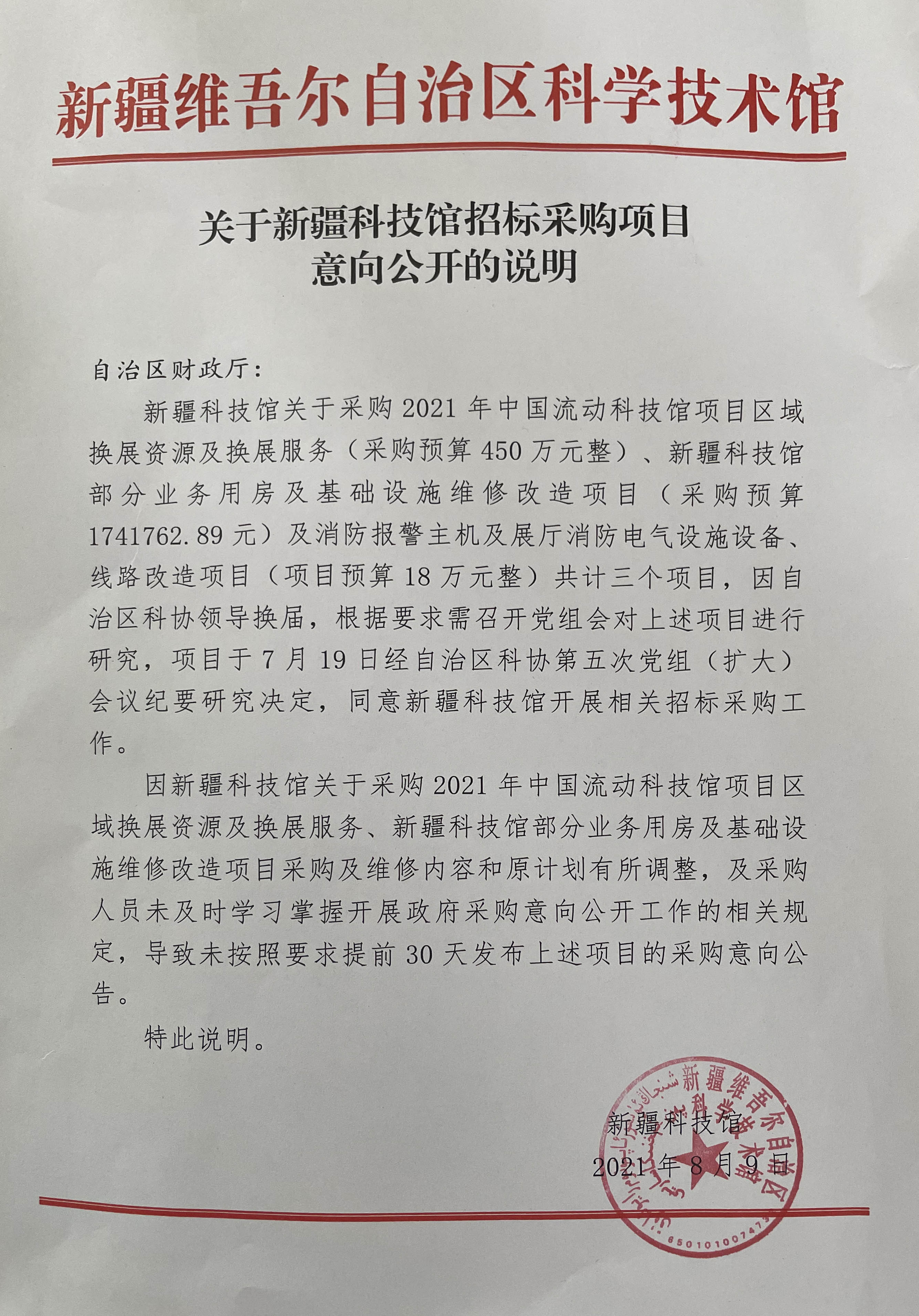 [政采云]新疆中业建设工程项目管理有限公司关于新疆维吾尔自治区科学技术馆采购中国流动科技馆区域换展资源:展览组合1、展览组合2各一套及相关换展服务项目的公开招标公告