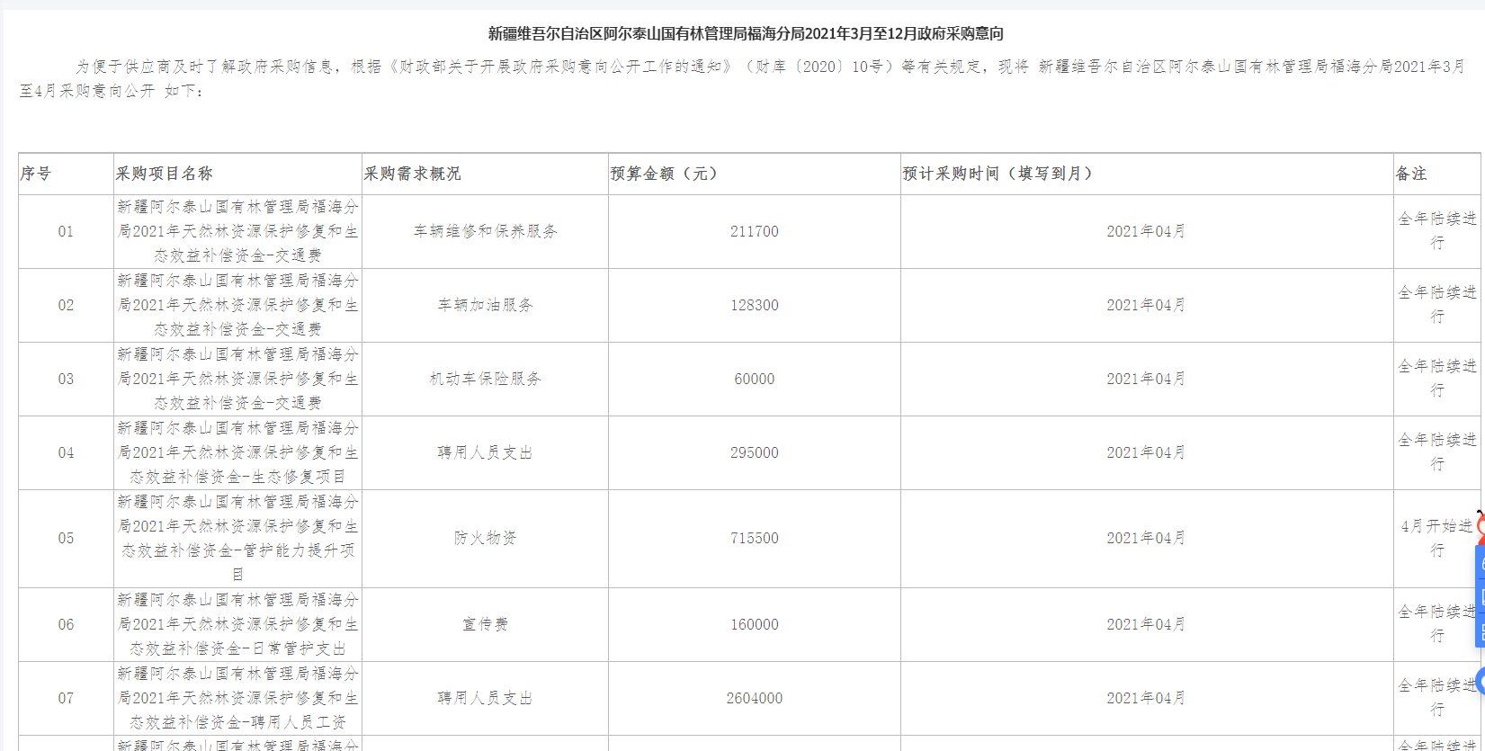 [政采云]新疆蓝畅工程咨询管理有限公司关于阿尔泰山国有林管理局福海分局2021年天保方案管护能力提升项目(森林防火现代化装备)的公开招标公告