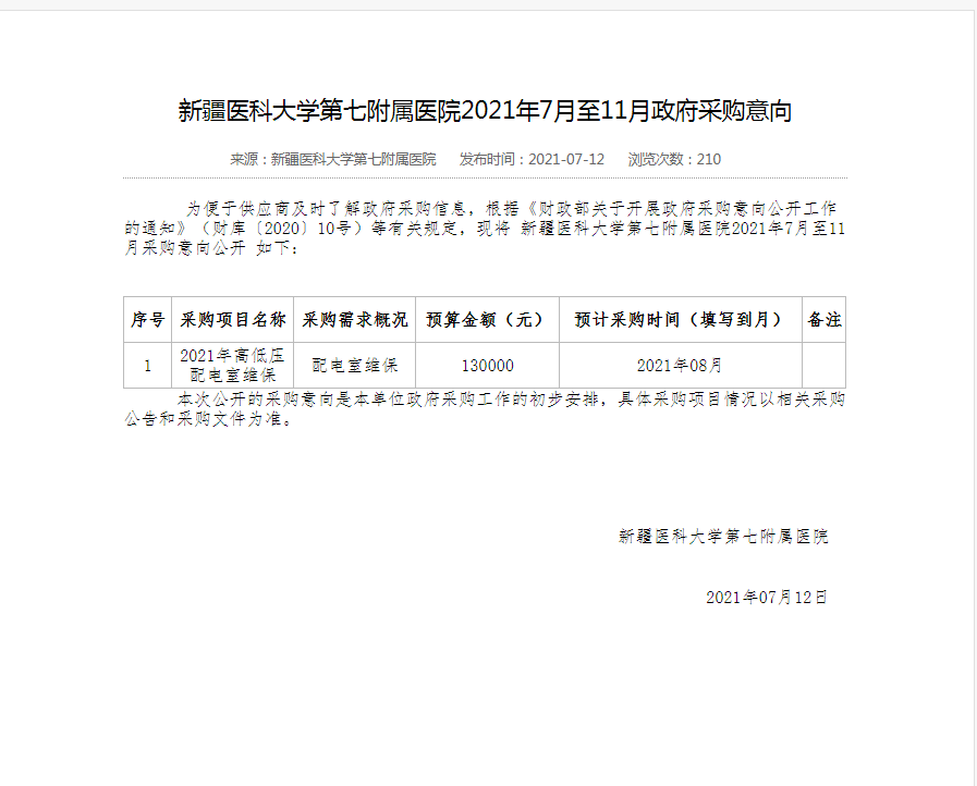 [政采云]新疆医科大学第七附属医院配电室维保项目的竞争性磋商公告