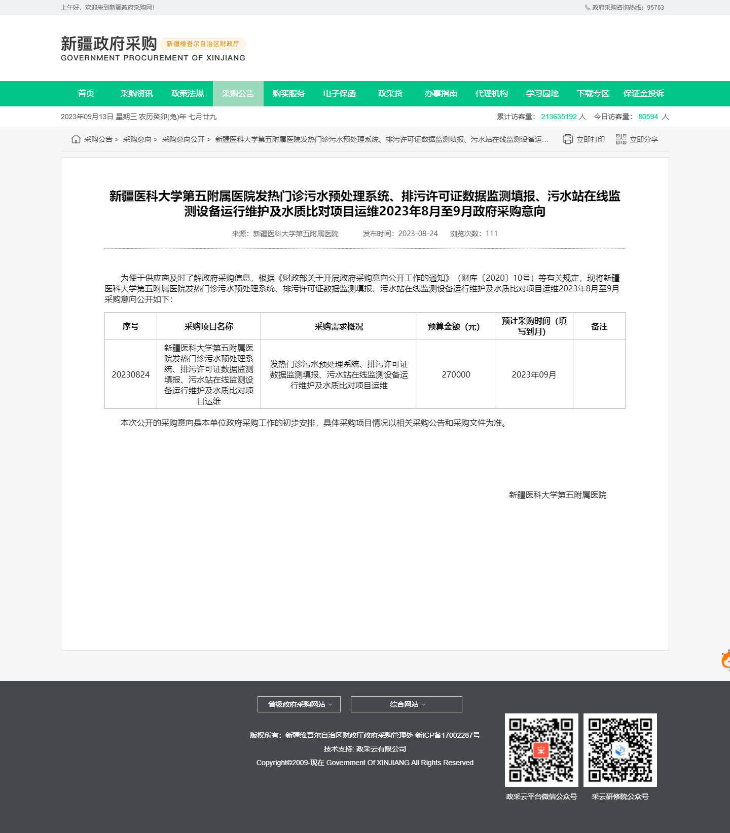 [政采云]新疆德鸿项目管理咨询有限公司关于新疆医科大学第五附属医院发热门诊污水预处理系统、排污许可证数据监测填报、污水站在线监测设备运行维护及水质比对项目的竞争性磋商公告