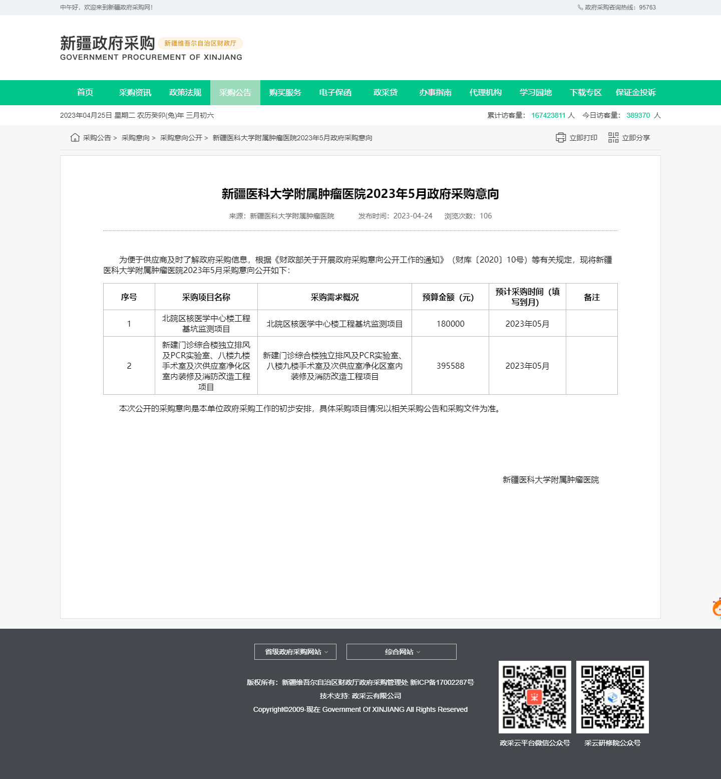 新疆医科大学附属肿瘤医院2023年5月政府采购意向.png