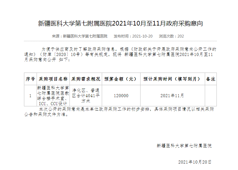 [政采云]新疆医科大学第七附属医院医教综合楼手术室、ICU、CCU深化设计项目 竞争性磋商公告