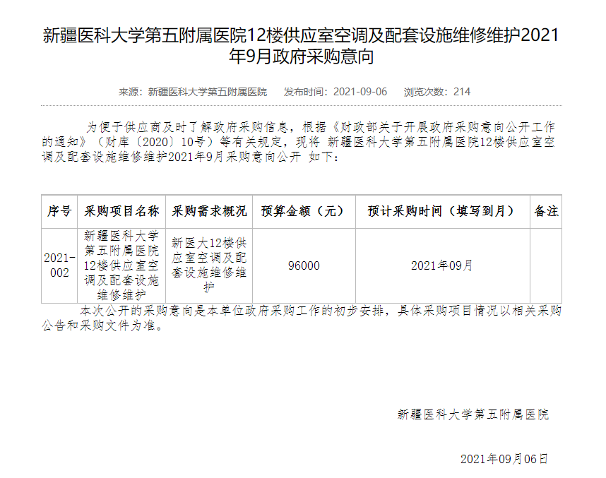 [政采云]中科高盛咨询集团有限公司关于新疆医科大学第五附属医院12楼供应室空调及配套设施维修维护项目的竞争性磋商公告