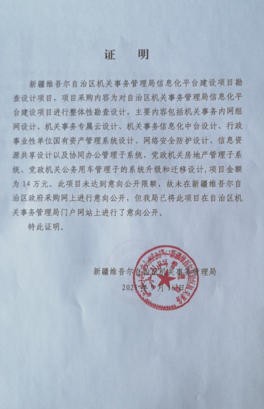 [政采云]新疆正企招标代理有限公司关于新疆维吾尔自治区机关事务管理局信息化平台建设勘察设计项目的竞争性磋商公告