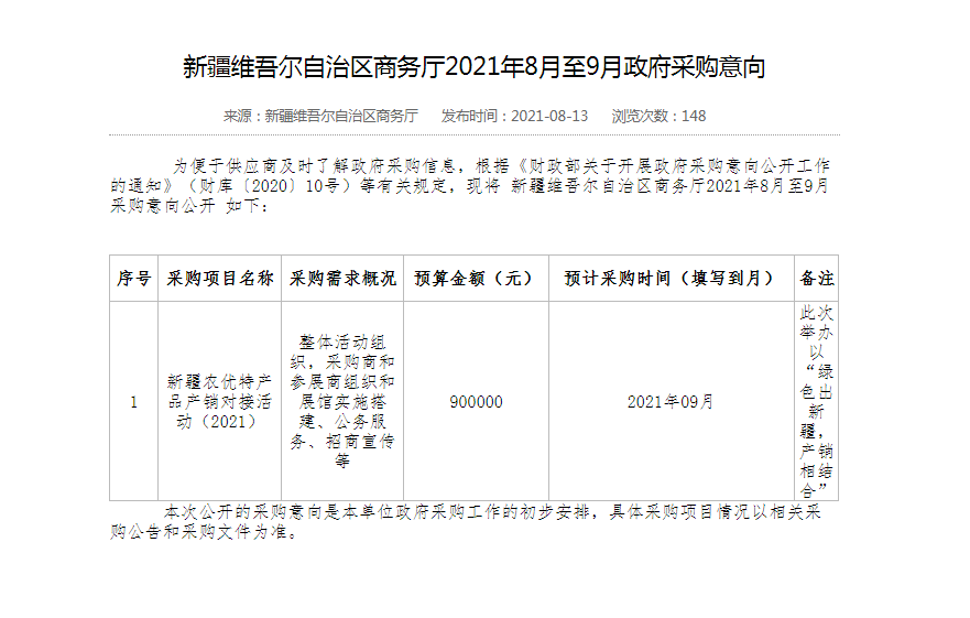 [政采云]新疆维吾尔自治区商务厅2021新疆农优特产品产销对接活动项目的竞争性磋商公告