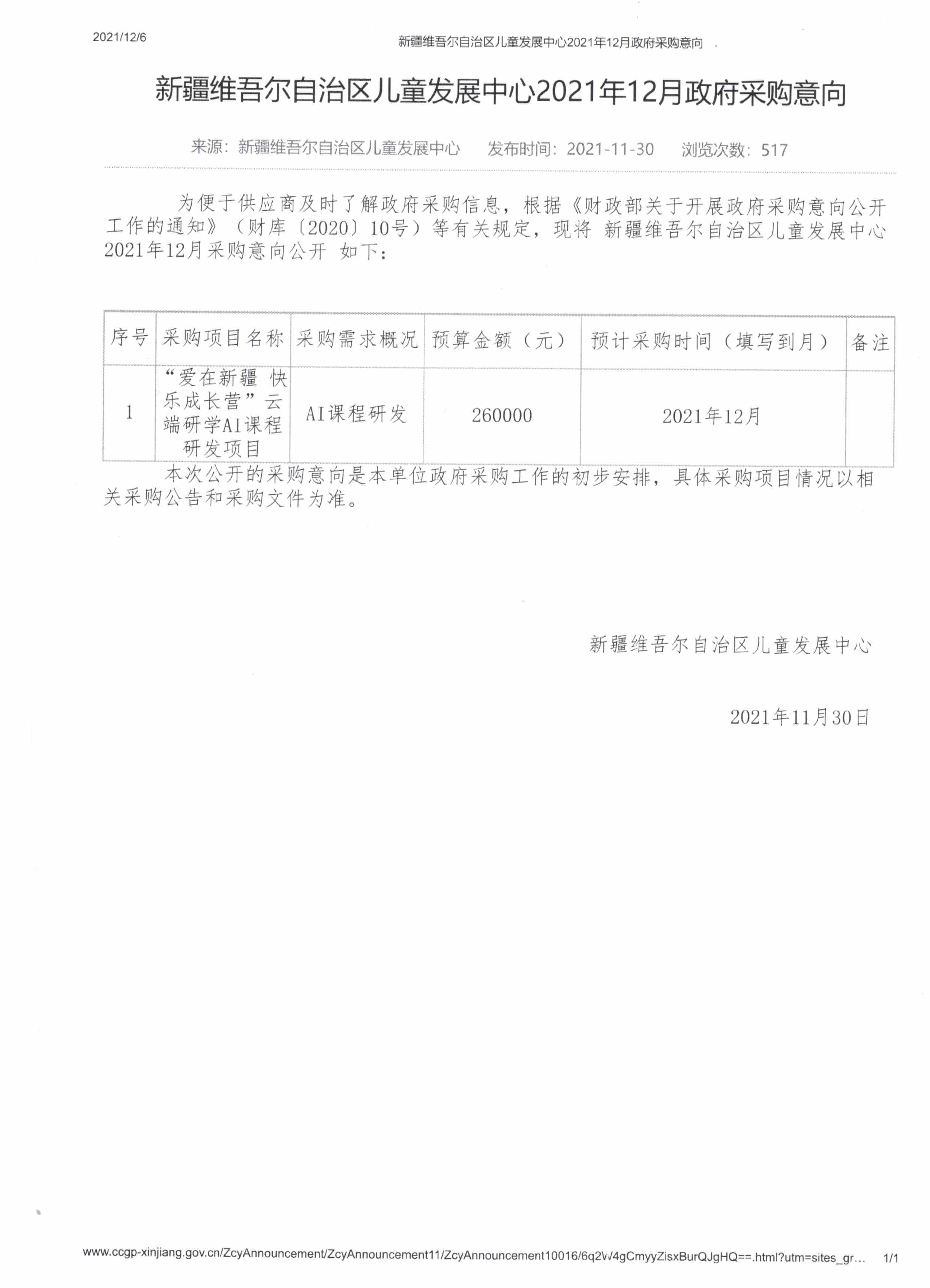[政采云]新疆爱满疆工程咨询有限公司关于“爱在新疆 快乐成长营”云端研学AI课程研发项目的竞争性磋商公告