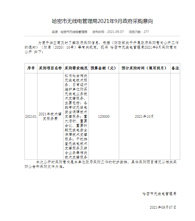 [政采云]哈密市无线电管理局无线电业务技术支撑服务采购项目的竞争性磋商公告