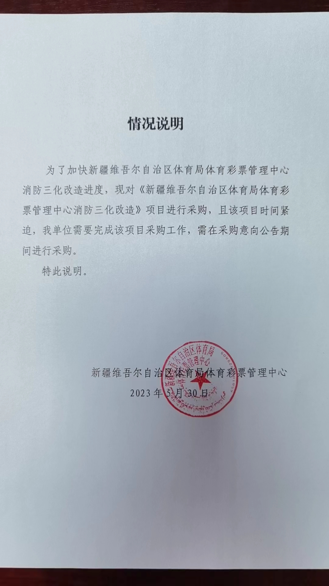 [政采云]新疆维吾尔自治区体育局体育彩票管理中心消防三化改造的竞争性磋商公告