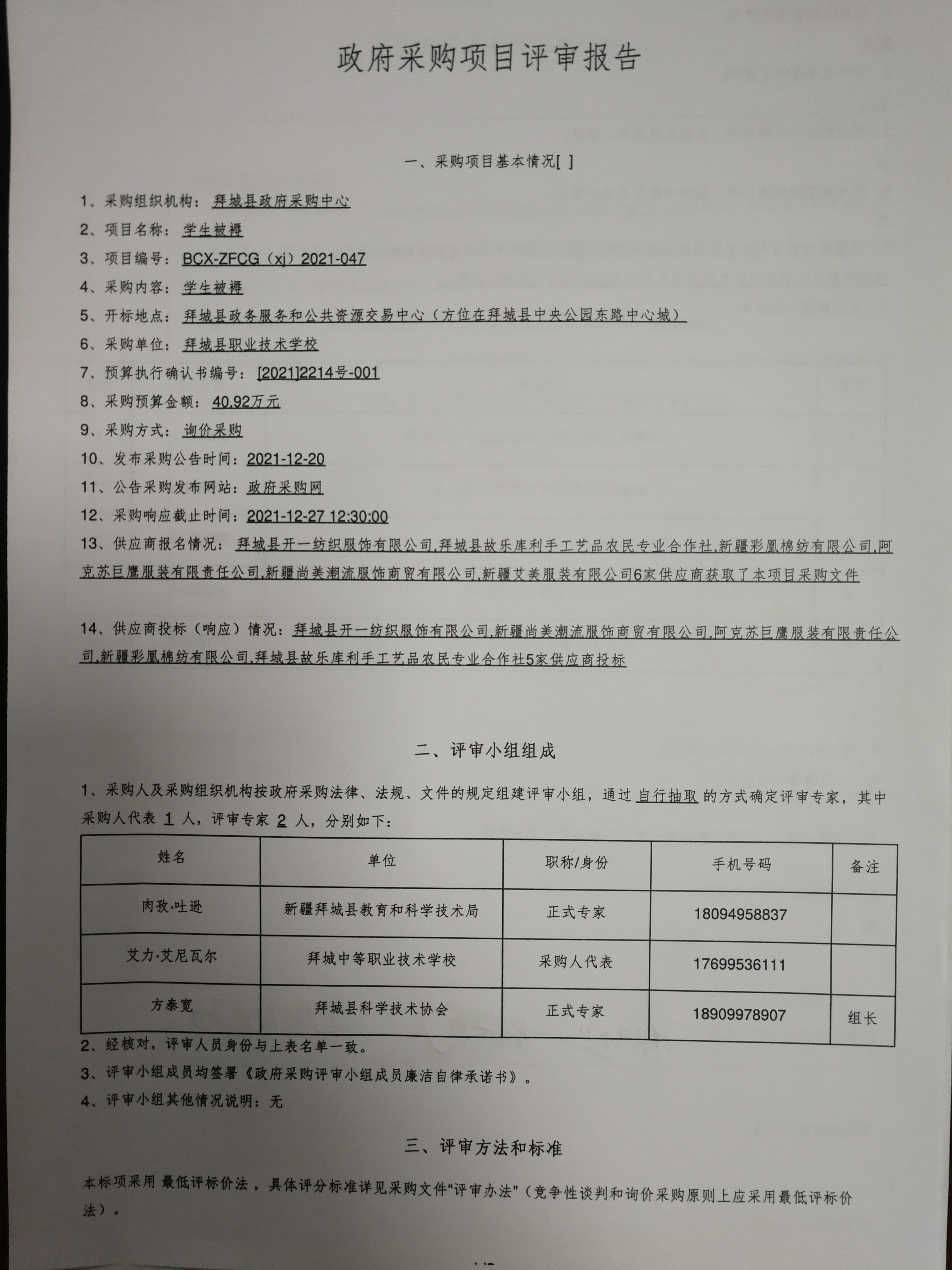 [政采云]拜城县政府采购中心关于学生被褥的中标(成交)结果公告