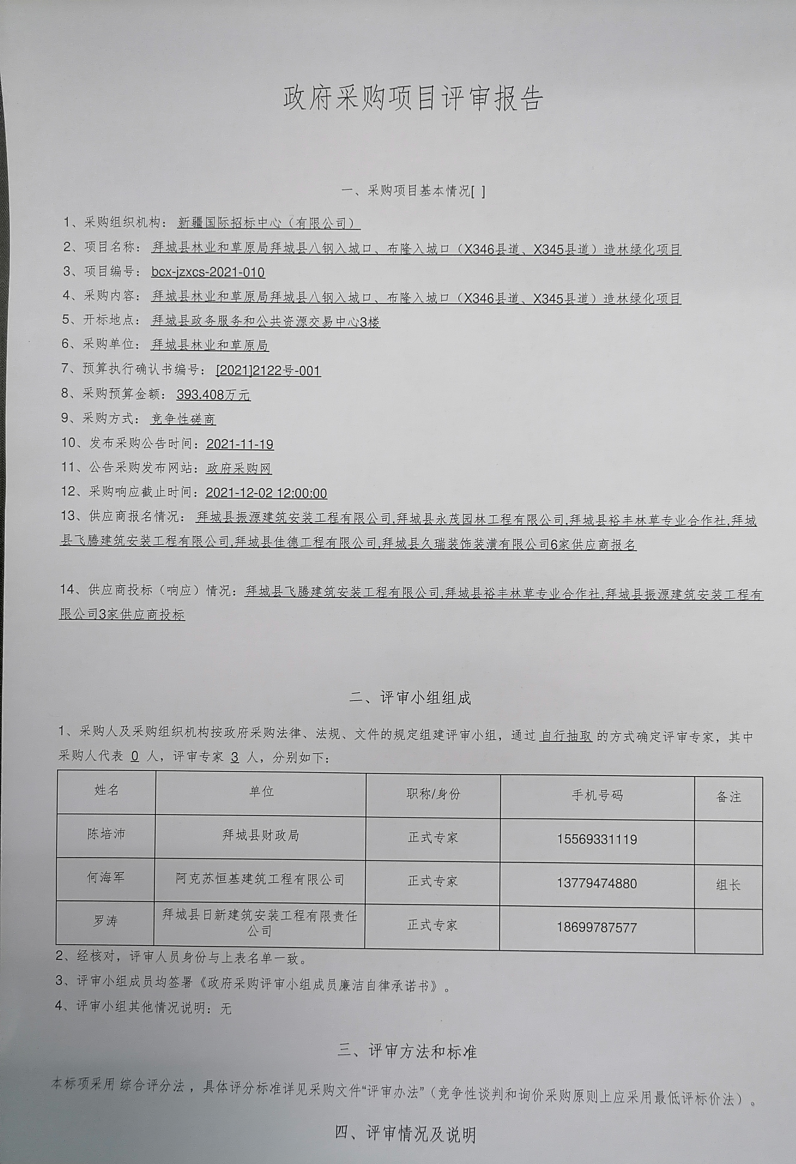 [政采云]新疆国际招标中心(有限公司)关于拜城县林业和草原局拜城县八钢入城口、布隆入城口(X346县道、X345县道)造林绿化项目的中标(成交)结果公告