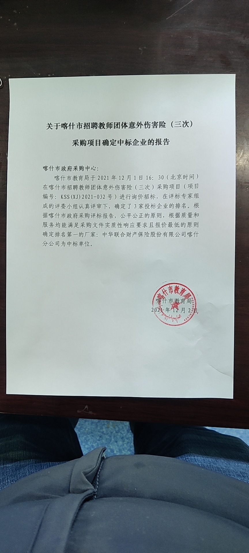 [政采云]喀什市招投标中心关于喀什市招聘教师团体意外伤害险(三次)采购项目的中标(成交)结果公告