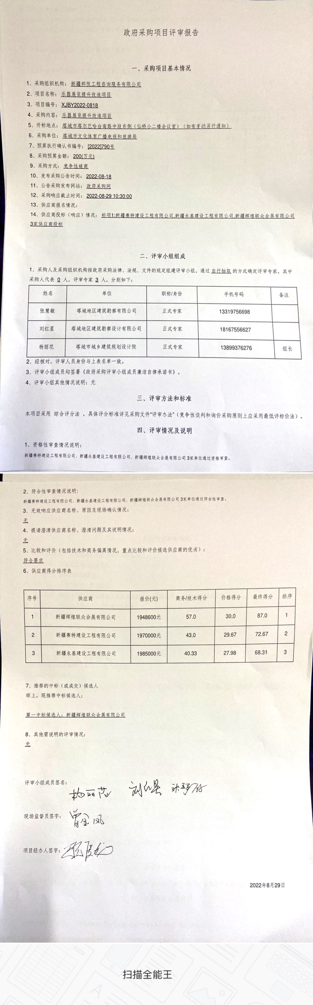 [政采云]新疆邦悦工程咨询服务有限公司关于乐器展览提升改造项目的中标(成交)结果公告