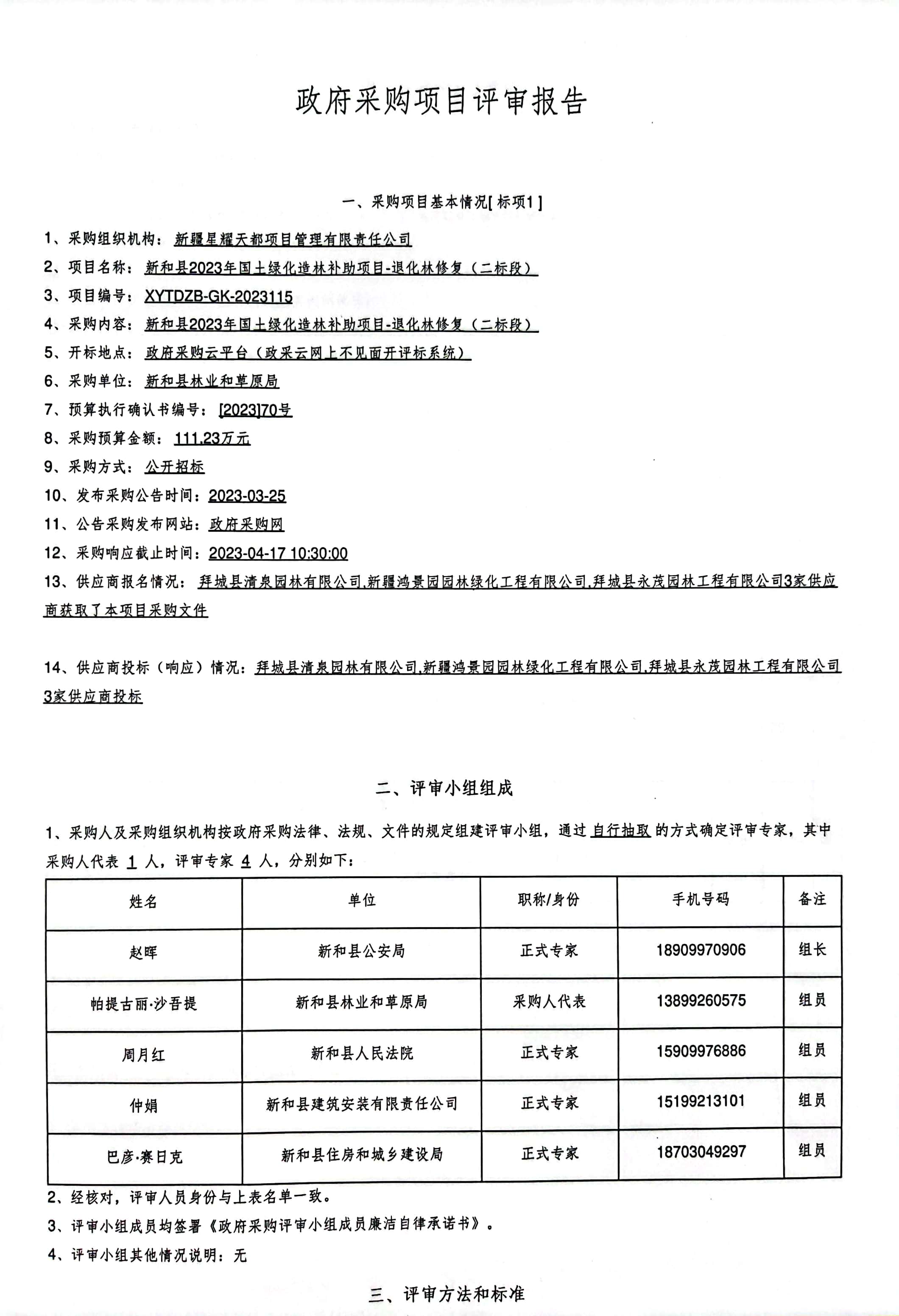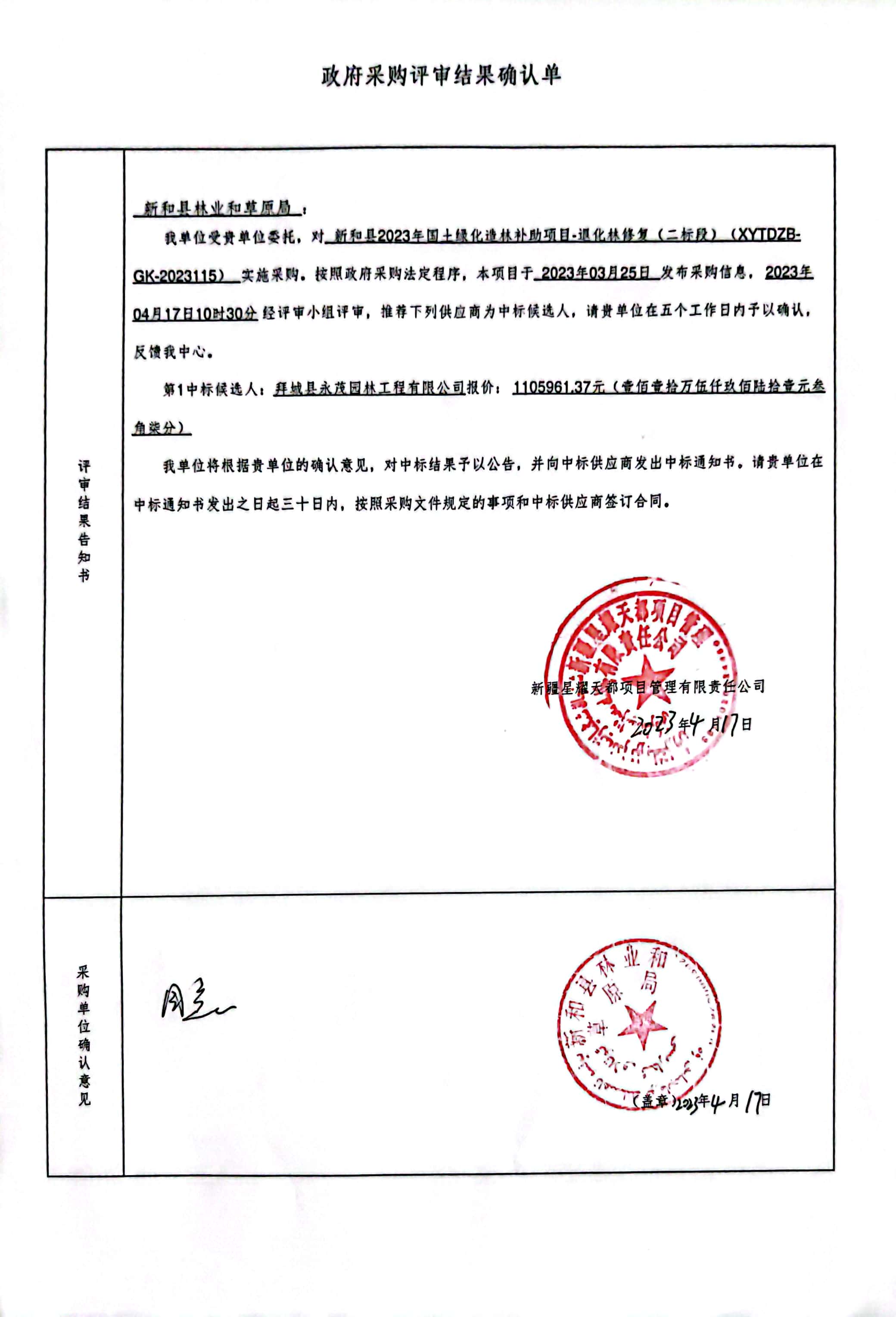 [政采云]新和县2023年国土绿化造林补助项目-退化林修复(二标段)的中标(成交)结果公告
