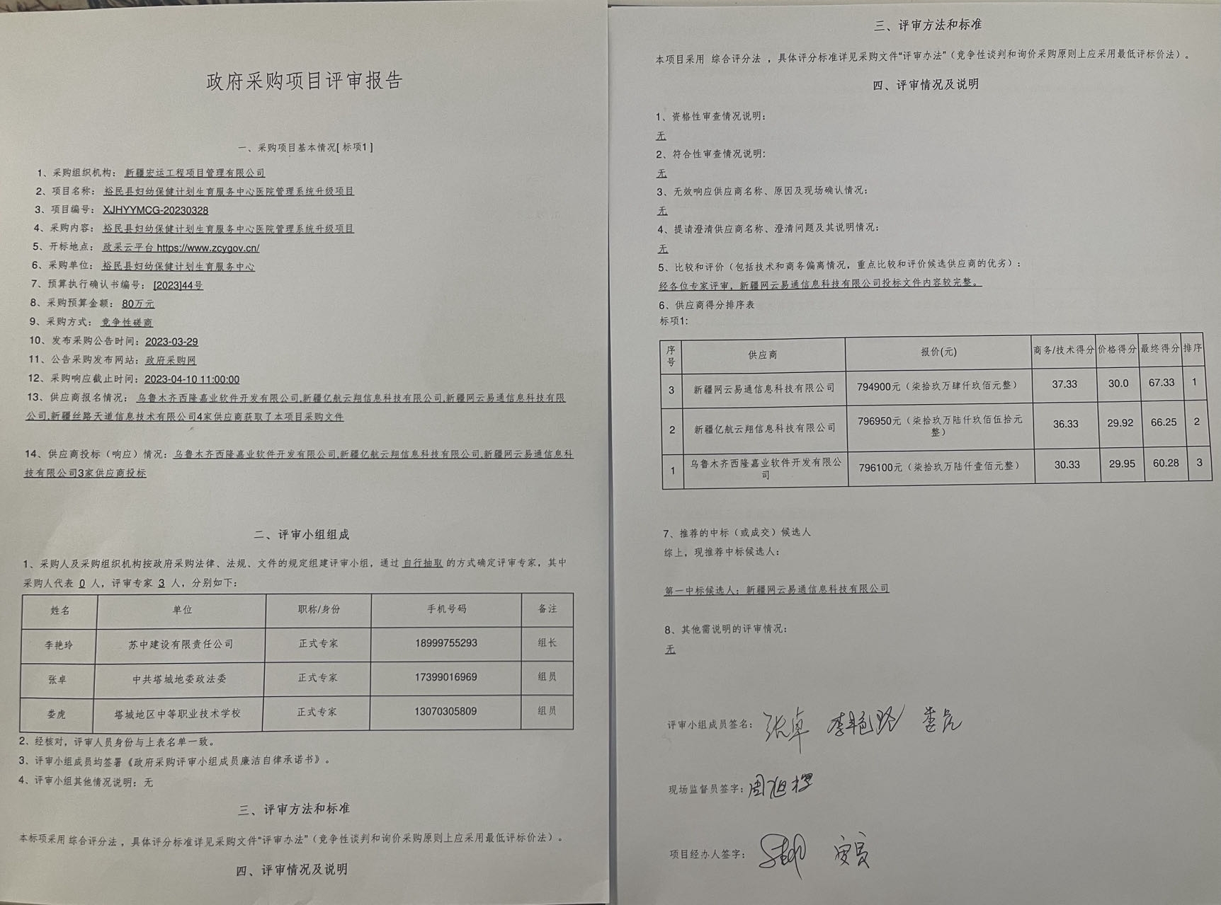 [政采云]新疆宏运工程项目管理有限公司关于裕民县妇幼保健计划生育服务中心医院管理系统升级项目的中标(成交)结果公告