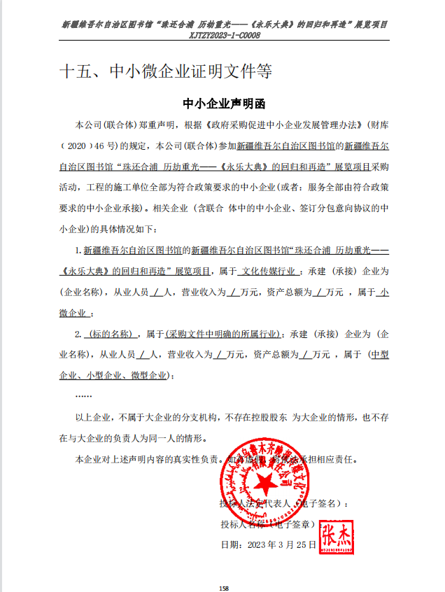 3-22招标文件新疆维吾尔自治区图书馆“珠还合浦 历劫重光——《永乐大典》的回归和再造”展览项目.docx
