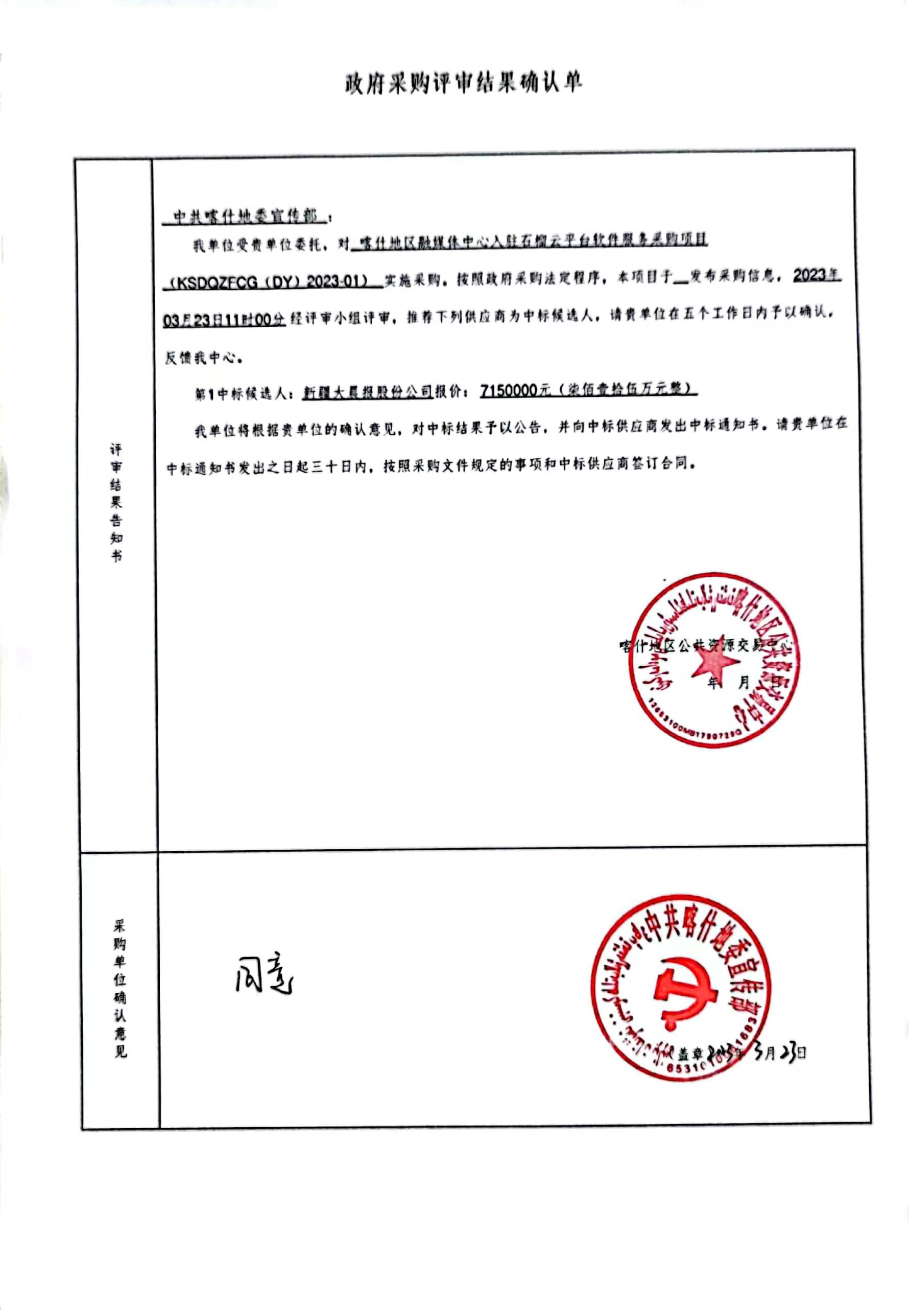 [政采云]喀什地区融媒体中心入驻石榴云平台软件服务采购项目中标(成交)结果公告