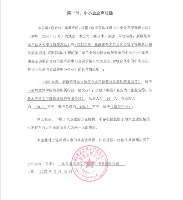 [政采云]新疆新业项目管理有限公司关于新疆维吾尔自治区公安厅特警总队餐饮服务项目的中标(成交)结果公告