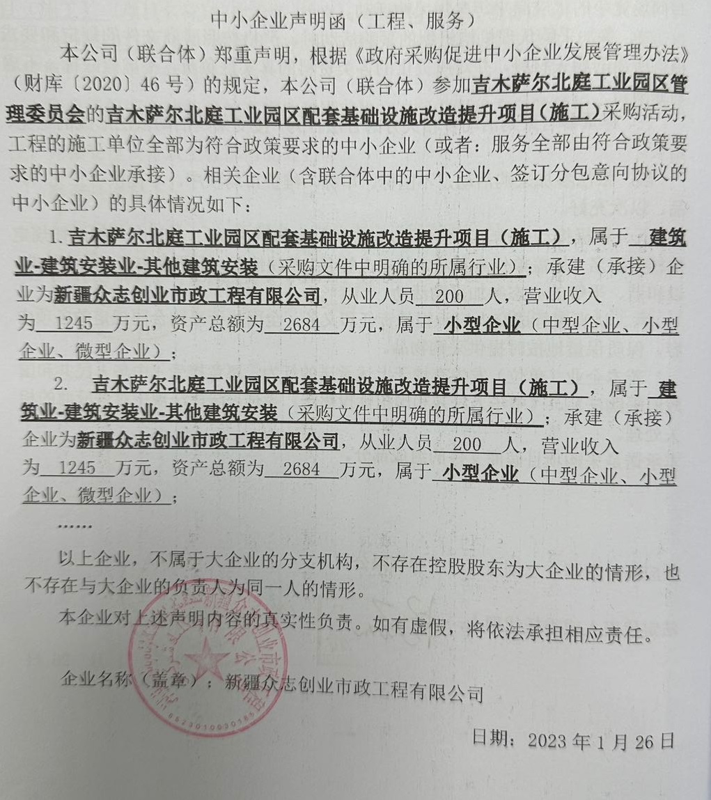 [政采云]新疆招标有限公司关于吉木萨尔北庭工业园区配套基础设施改造提升项目(施工)的中标(成交)结果公告