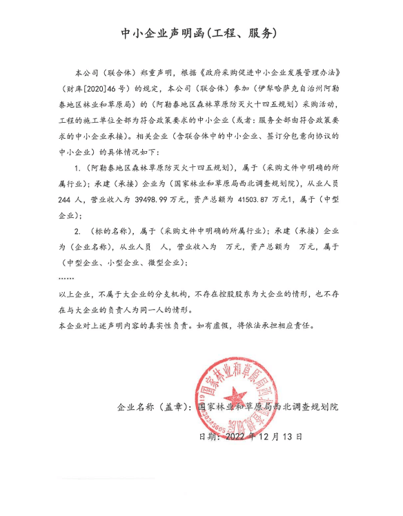 [政采云]阿勒泰地区森林草原防灭火十四五规划的中标(成交)结果公告