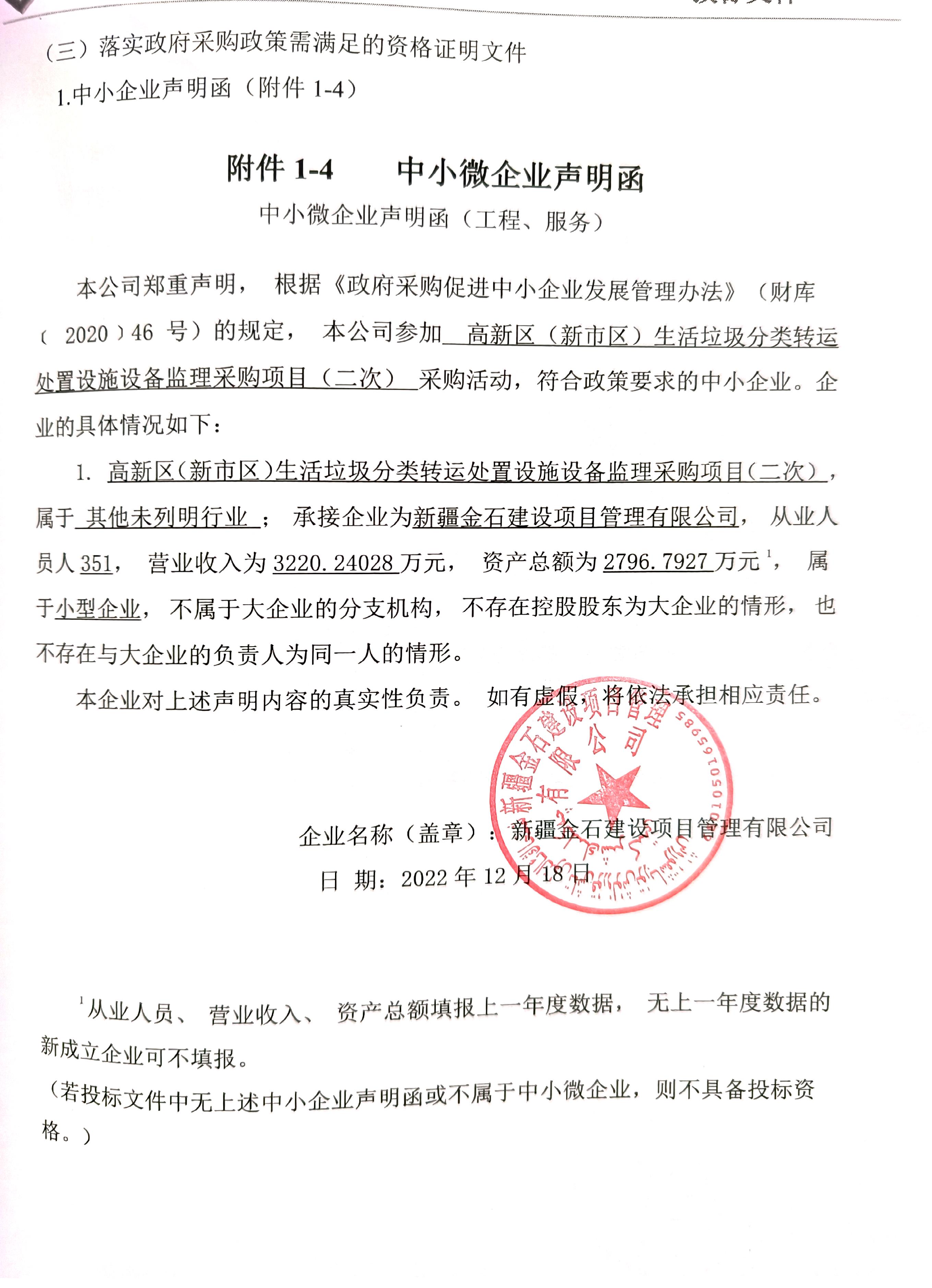 [政采云]新疆同孚招投标有限公司关于高新区(新市区)生活垃圾分类转运处置设施设备监理采购项目(二次)的中标(成交)结果公告