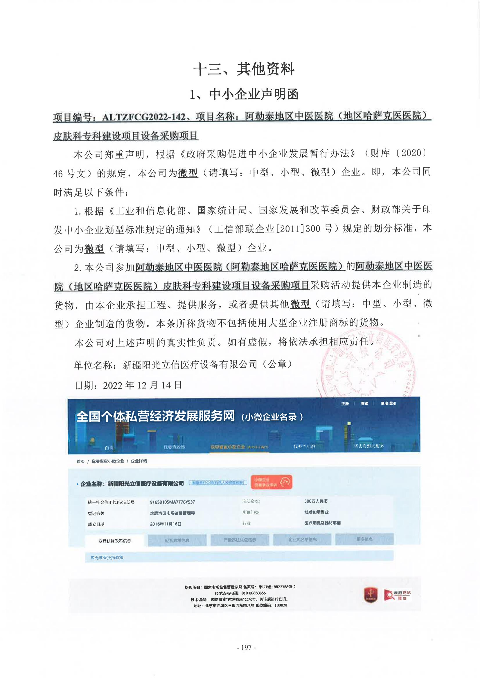 [政采云]新疆天壹中山工程咨询有限公司关于阿勒泰地区中医医院(地区哈萨克医医院)皮肤科专科建设项目设备采购项目的中标(成交)结果公告