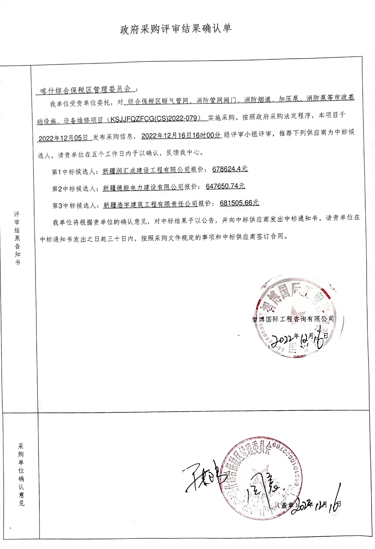 [政采云]智博国际工程咨询有限公司关于综合保税区暖气管网、消防管网阀门、消防烟道、加压泵、消防泵等市政基础设施、设备维修项目的中标(成交)结果公告