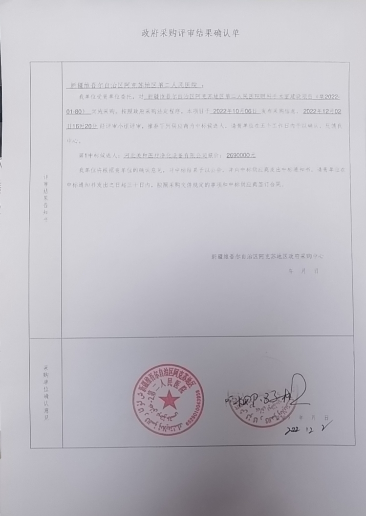 [政采云]新疆维吾尔自治区阿克苏地区政府采购中心关于新疆维吾尔自治区阿克苏地区第二人民医院眼科手术室建设项目的中标(成交)结果公告