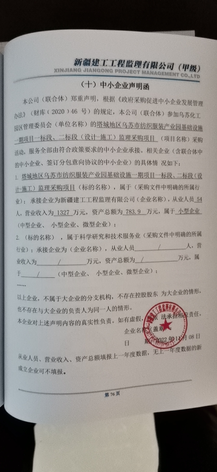 塔城地区乌苏市纺织服装产业园基础设施一期项目一标段、二标段(设计-施工)监理采购项目10.31.doc