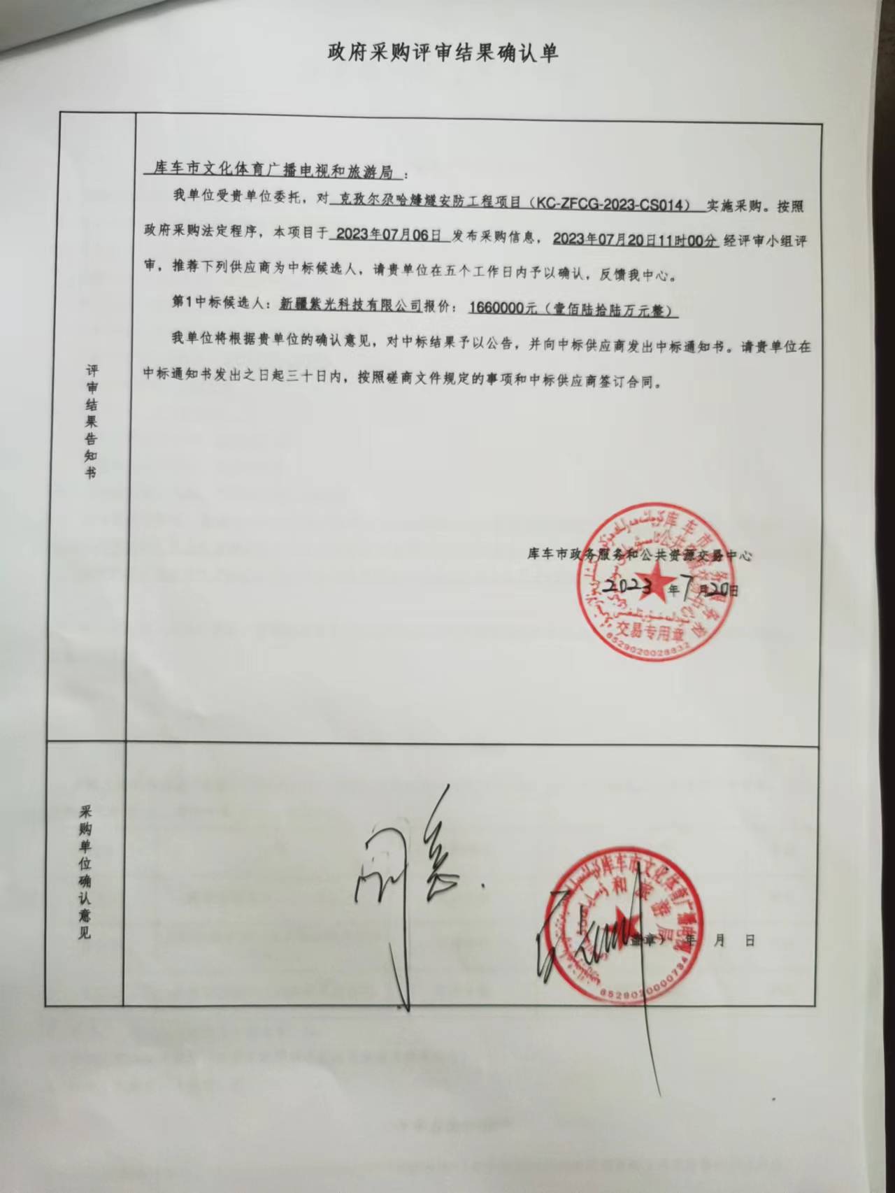 [政采云]库车市政务服务和公共资源交易中心关于克孜尔尕哈熢燧安防工程项目中标(成交)结果公告